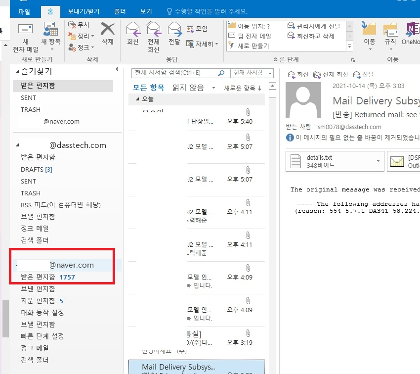 아웃룩을 쓰면 통합해서 볼 수 있으니 편리하쥬 ㅋㅋ 저도 오늘 쓸데없이 이런 생각이 들어서 아웃룩에 네이버메일을
