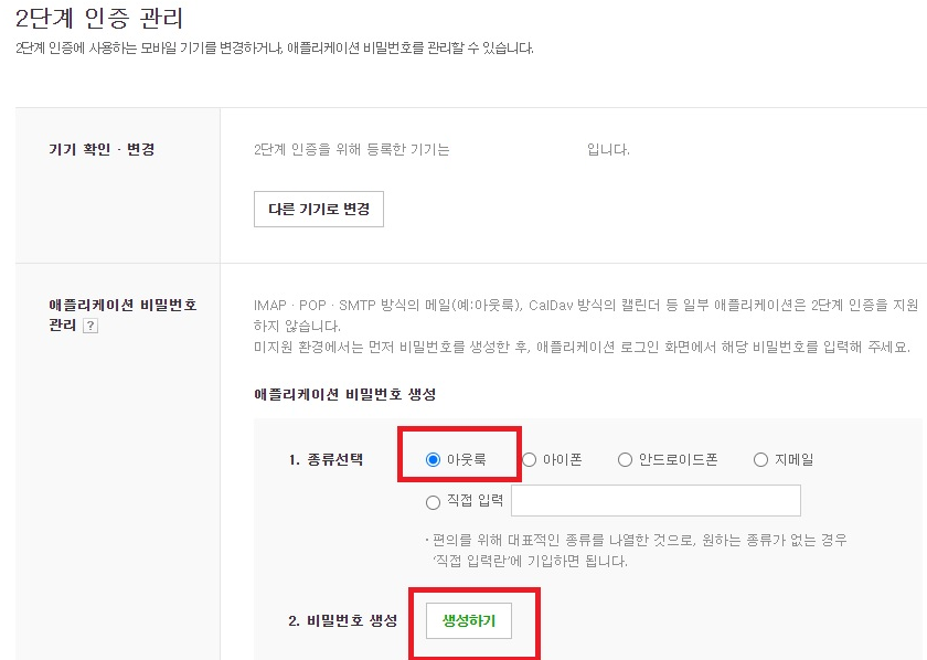 2) 2단계 인증 설정 네이버 메일 연동 방법