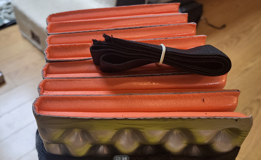 파우치를 개봉하면 고무밴드가 있는데 이것은 발포 매트 접었을때 고정하라는 용도의 밴드입니다 총 2개 들어가있습니다.