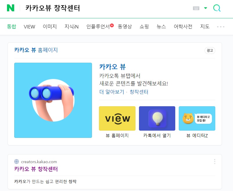 네이버에 카카오뷰 창작센터 검색을 합니다.