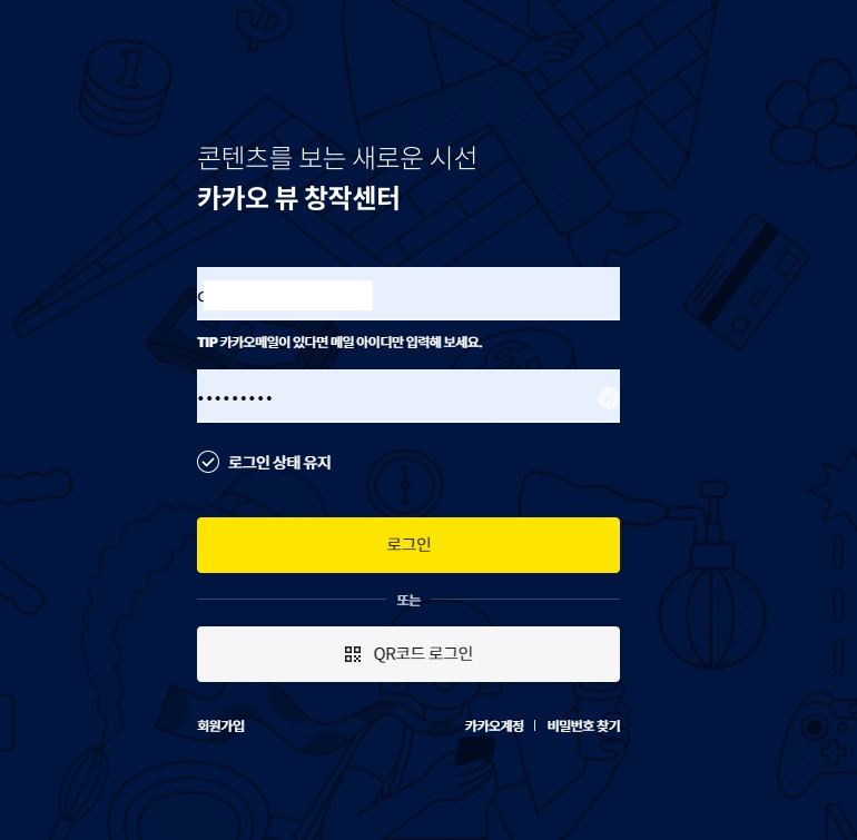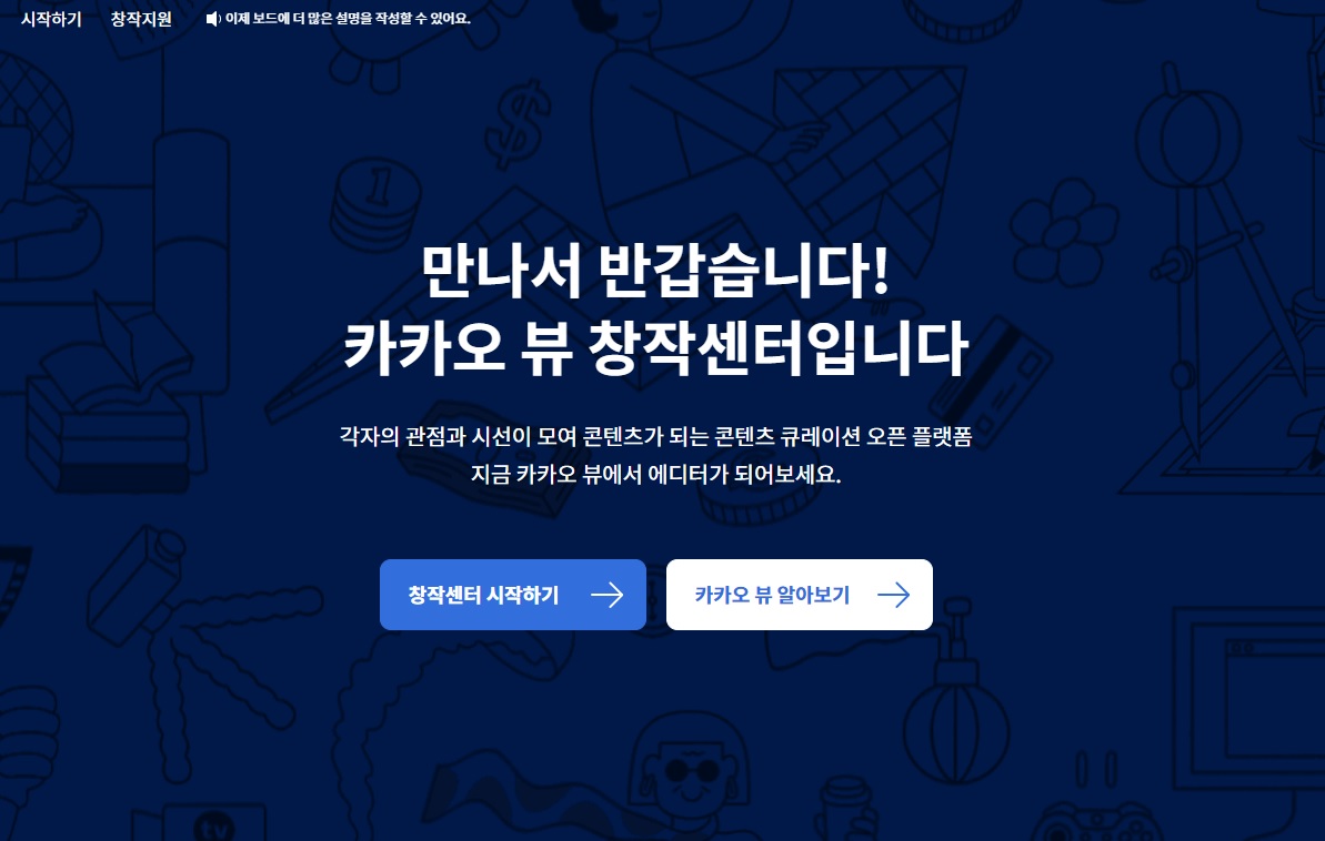 카카오 뷰 창작센터 클릭하여 홈페이지 접속합니다.