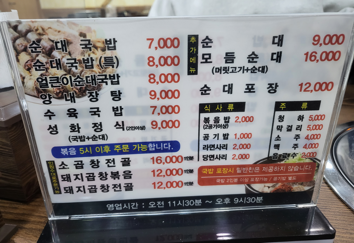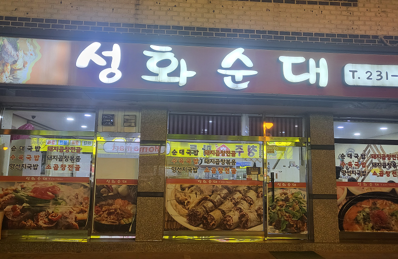 마사지를 받으니 왠지 모르게 엄청나게 배가 고파지기 시작해서 메뉴 고민중 순대국밥이 생각나.. 바로 성화순대로 달려갔습니다. ㅎㅎㅎ