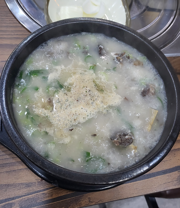 크 드디어 제가 주문한 순대국밥(특)이 나왔어요 ㅎㅎ 저는 머릿고기나 이런걸 그닥 좋아하는 편이 아니여서 순대만 넣어달라구 요청드렸습니다.