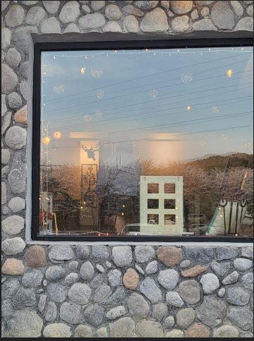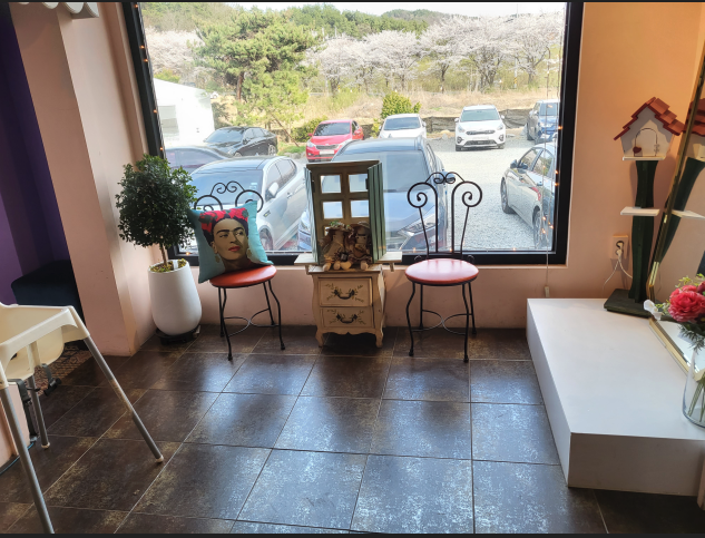 테이블 수는 넉넉하게 있는 편이더라구요 ㅎㅎ 벚꽃을 볼 수 있는 큰창도 있고요