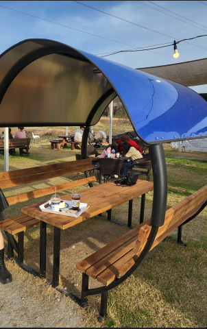 저기 삼각형 텐트같이 생긴곳에 들어가고싶었는데 사람들이 꽈악 차 있어서 아쉽지만 위 사진의 테이블로 자리를 잡았습니다. ㅎㅎ