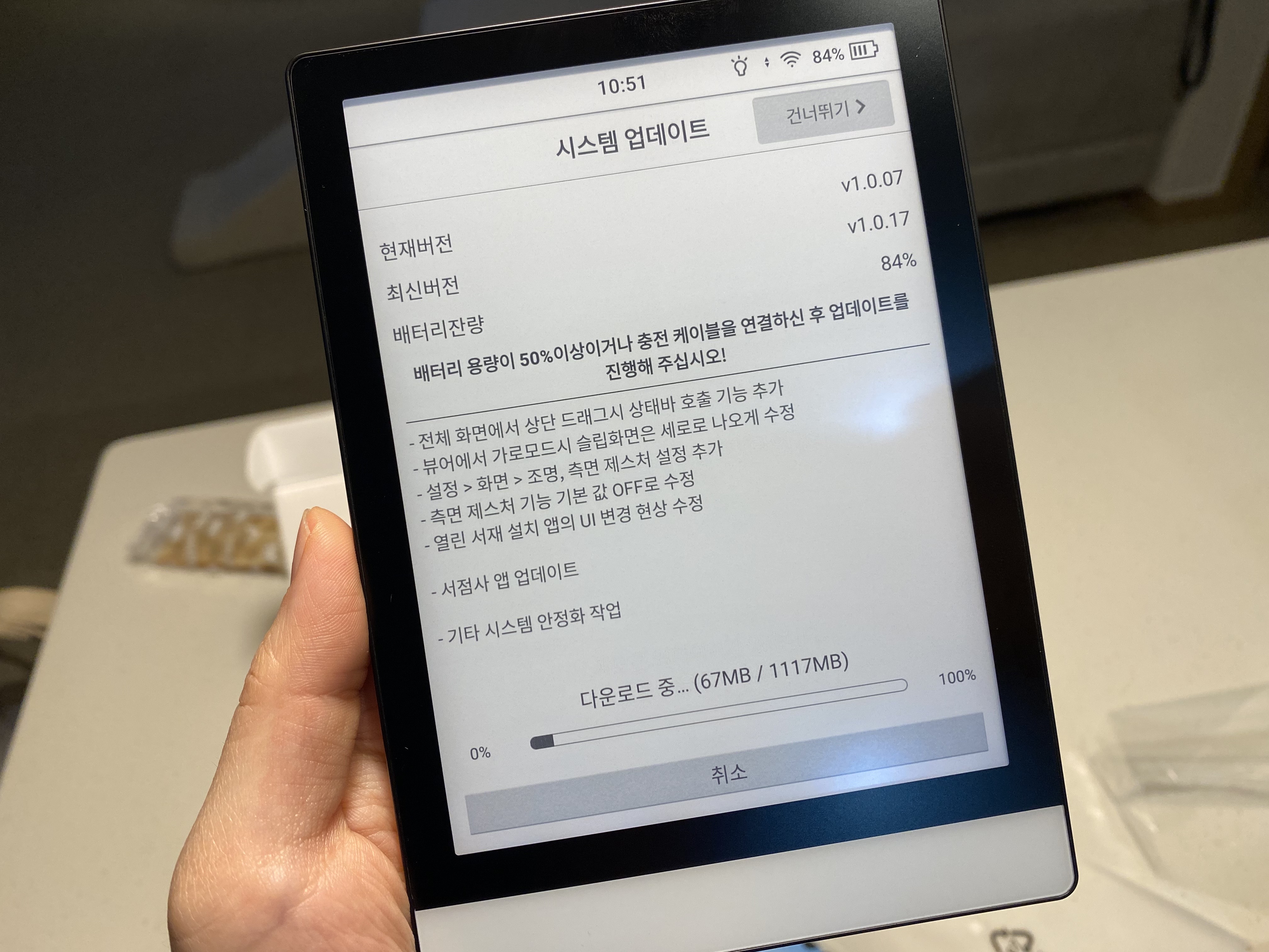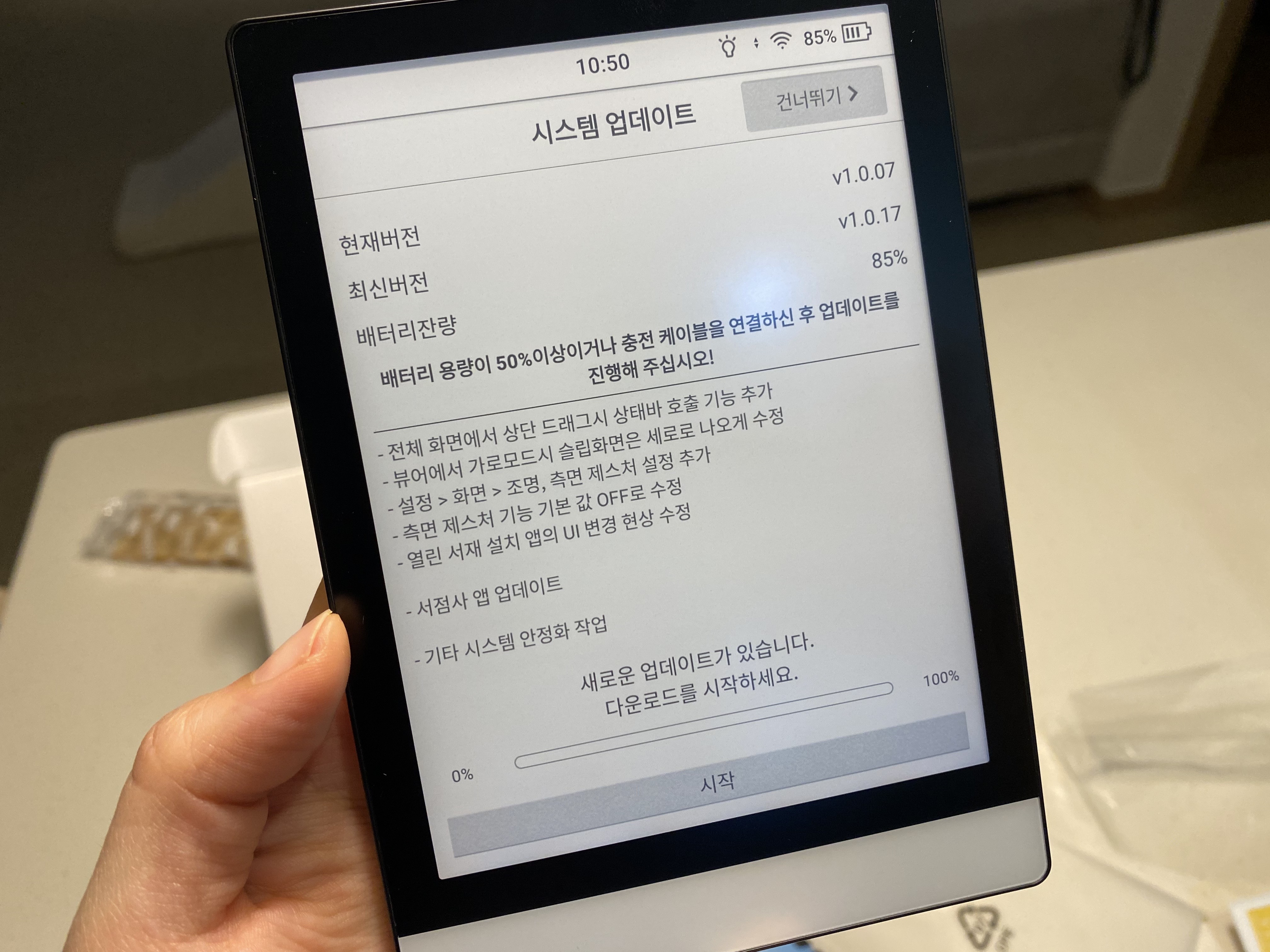 전원을 켜보니 바로 업데이트를 하라고 해서 업데이트를 눌러줍니다.