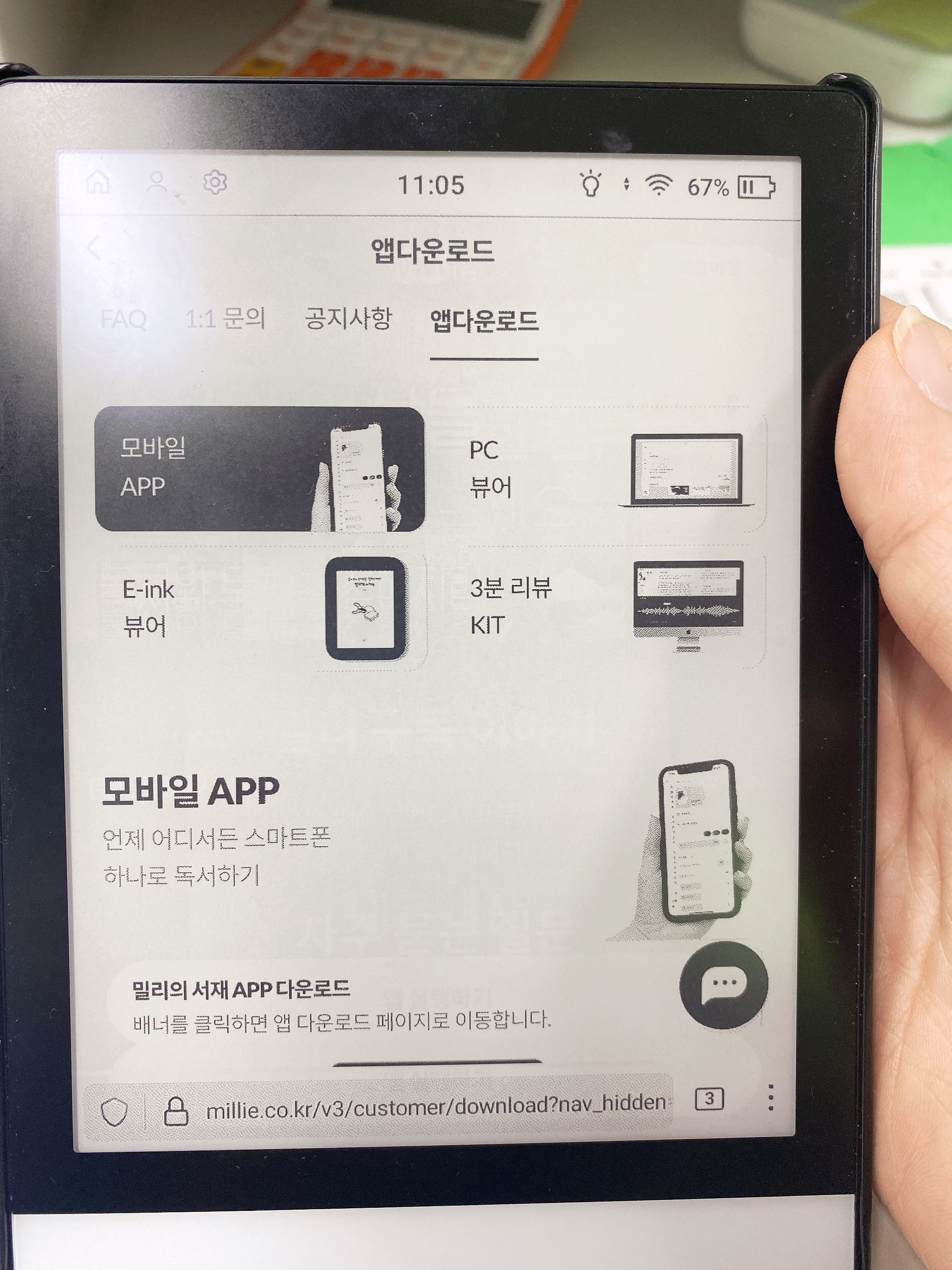 저는 밀리의 서재를 통해 책을 보고싶어서 밀리의 서재가 실행되는 기기를 찾다보니