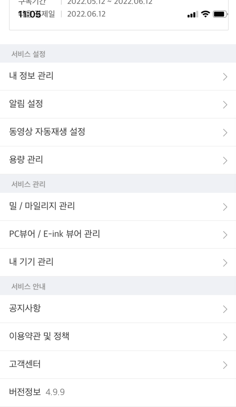 그럼 이렇게 기존에 모바일에서 보던 책들의 목록이 뜹니다.