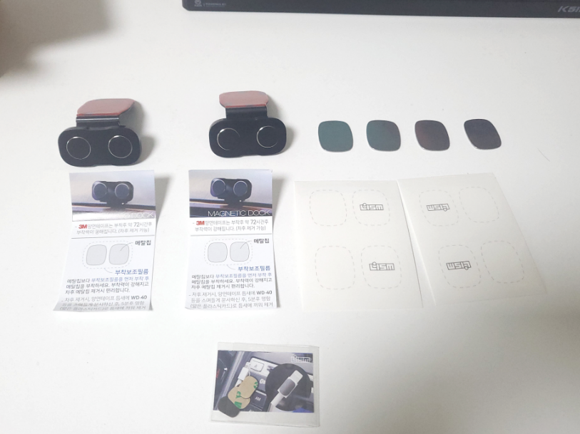 리즘 차량용 태블릿 거치대의 구성품은 거치대 1EA , 마그네틱 2EA , 부착 보호필름 1EA 로 구성되어있습니다.