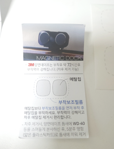 거치대에는 독일제 ND 마그네틱으로 거치대에는 자석이 2개 붙어있으며 , 차량 고정시에는 양면테이프로 고정하는 방식입니다.