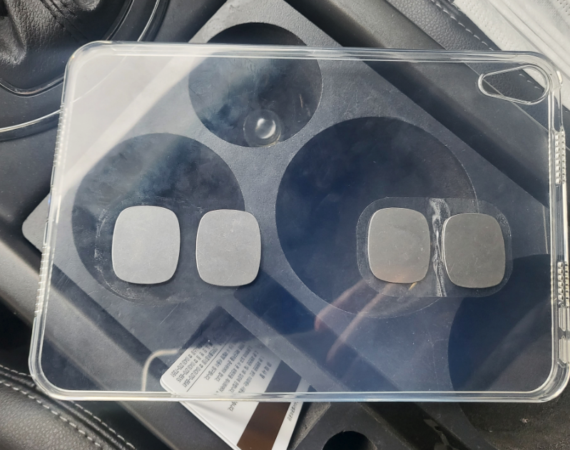태블릿에 마그네틱을 부착하기 싫어서 , 싸구려 투명 케이스를 사서 투명 케이스에 부착을 하였습니다.