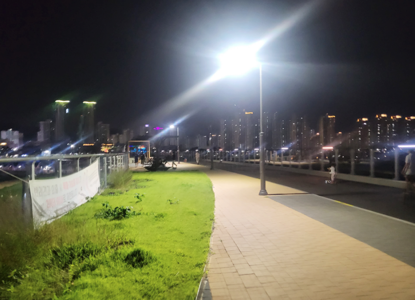중간중간 쉬어갈 수 있게 벤치와 테이블이 곳곳에 비치되어있고, 태양광 조명도 있습니다.