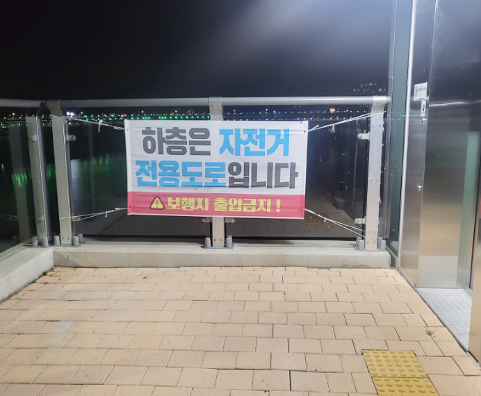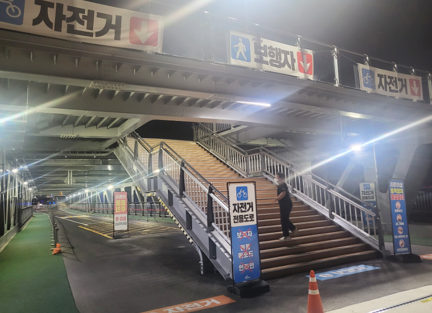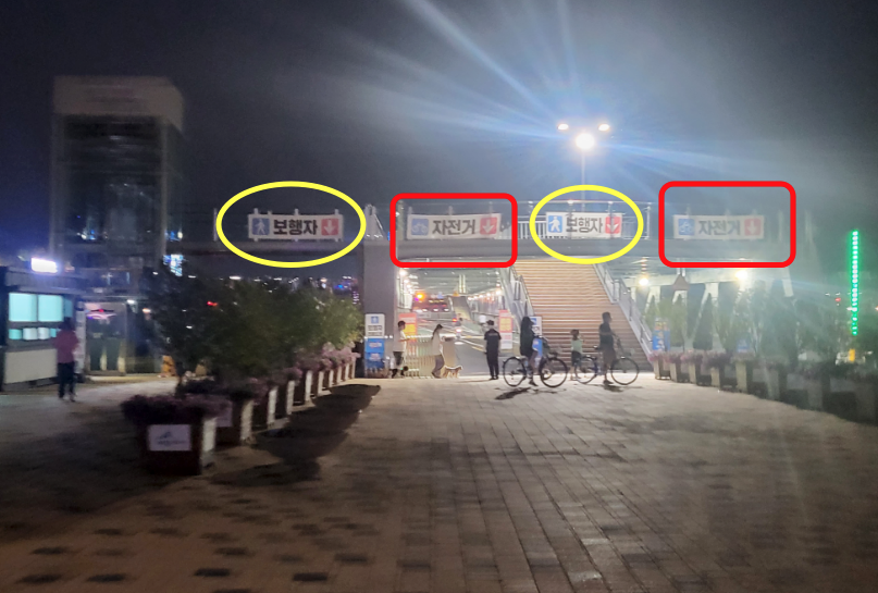 이응다리는 아래층은 자전거이용자들이 이용하고 위에층은 보행자들, 운동하는사람들이 이용하게 끔 되어있어 아이들이 있으신분들은 데리고오셔서 안전하게 놀다갈수있을거같아요