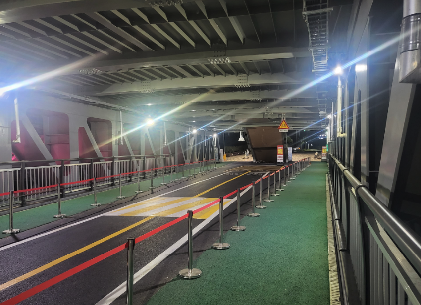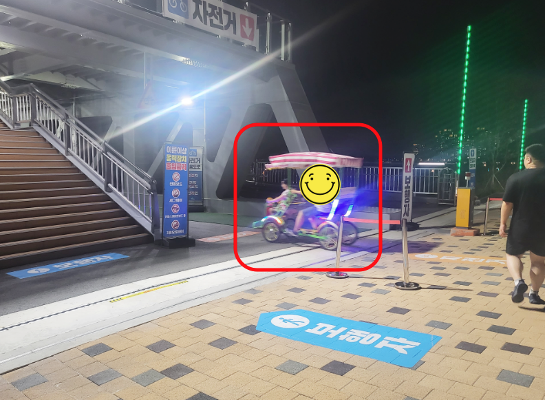 보행자 측으로 들어가면 이렇게 올라가는 길이 나오게 됩니다. 날이 더우니 찬찬히 걸어갑니다 ㅎㅎ. 중간중간 led 조명으로 해놓은것도 참 잘해놨더라구요.