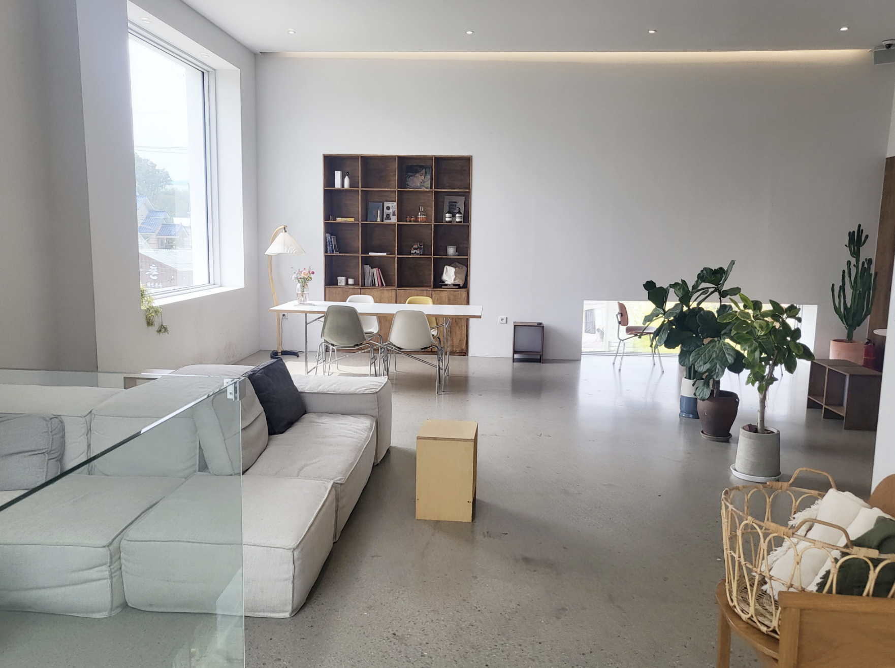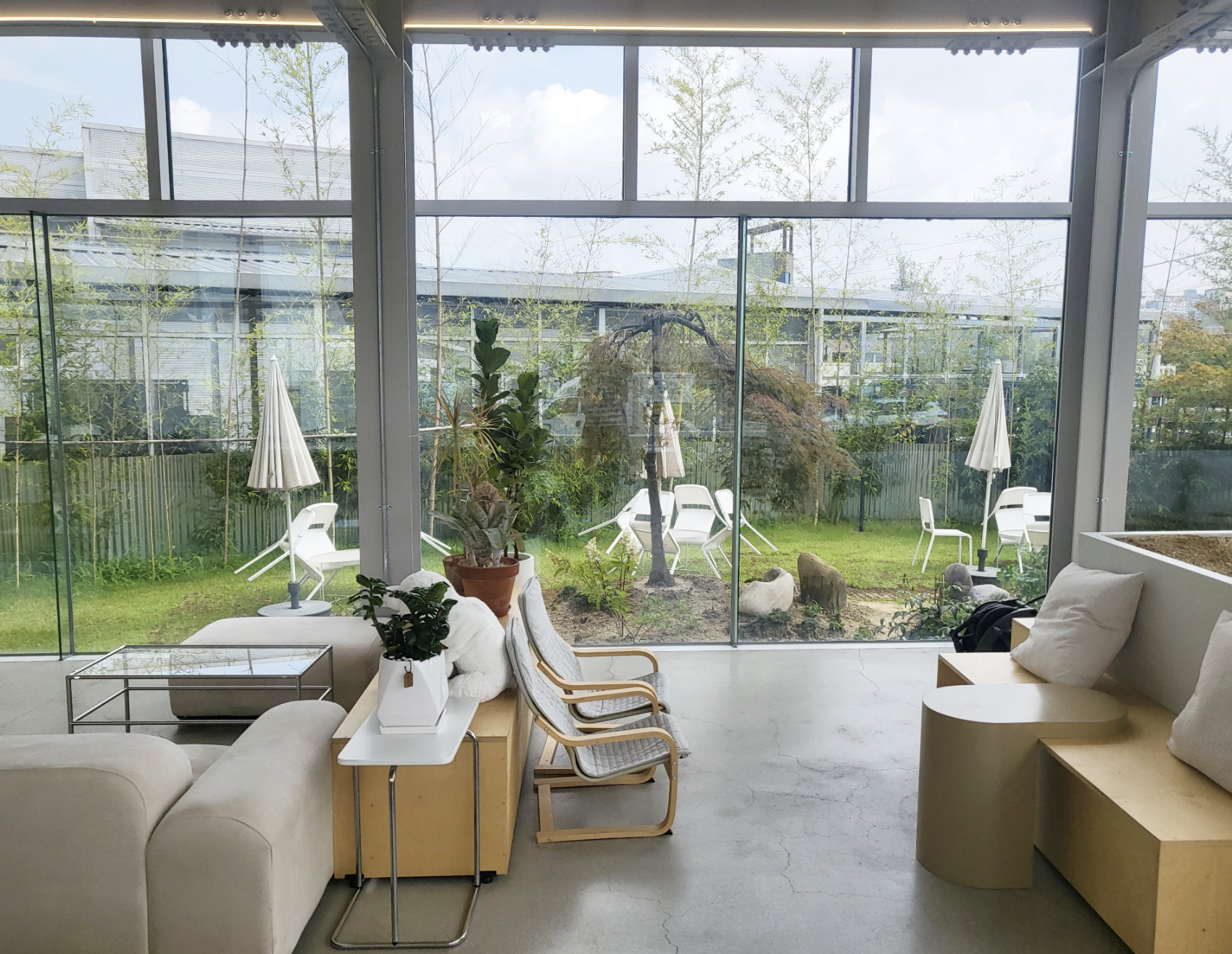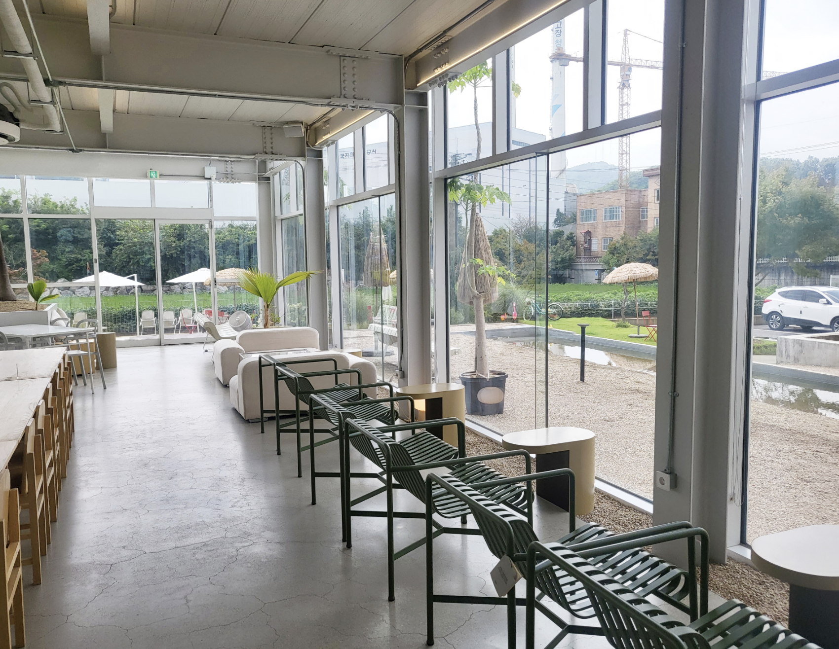 대형 식물도 심어놓아서 그린그린한 느낌이 더욱더 물씬 풍겨요 ㅎㅎㅎ 저희는 2층보단 1층이 마음에 들어서 1층으로 자리잡았습니다.