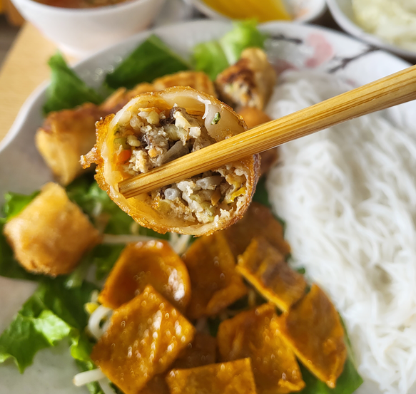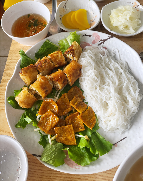 제가 베트남 요리중에 좋아하는 분짜가 나왔습니다 ㅎㅎㅎ 분짜는 아삭아삭한 튀김에 돼지고기들 다져서 순대같이