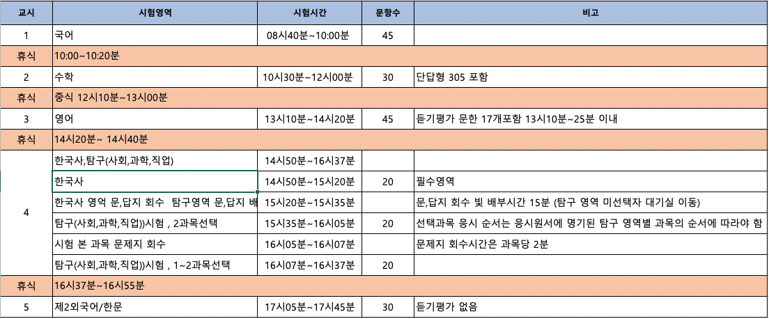 2023학년도 대학수학능력 4교시 시험 주의사항