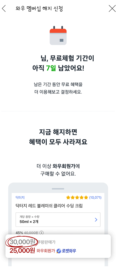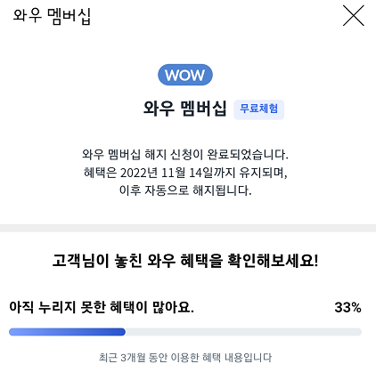 7. 드디어 쿠팡 로켓배송 와우 멤버십이 해지가 되었네요. 고생하셨습니다.