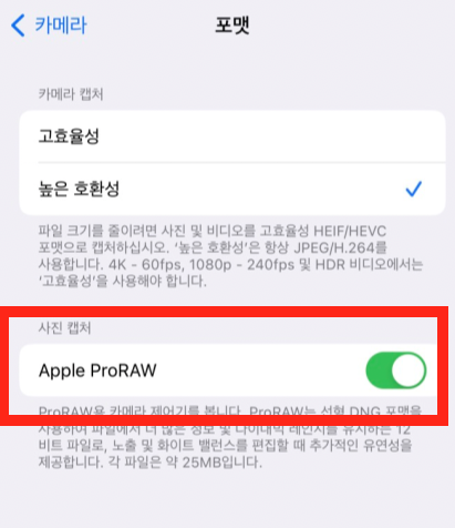 사진 촬영을 오래 해보셨던 분들은 RAW 사진 파일이 멀 의미하는지 아실겁니다. 애플 카메라 설정 기능중에 애플RAW 기능을