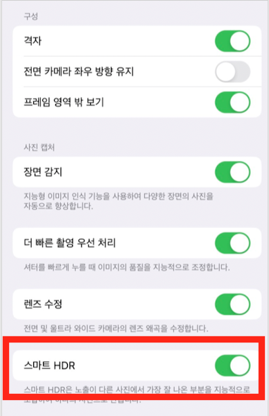 3. 아이폰 카메라 설정 : 스마트 HDR