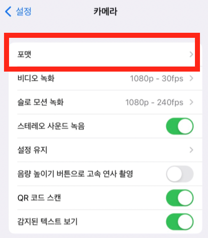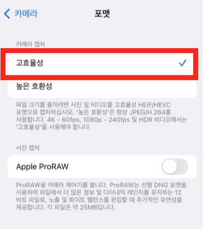 2. 아이폰 카메라 설정 : 고효율성 VS 높은 호환성