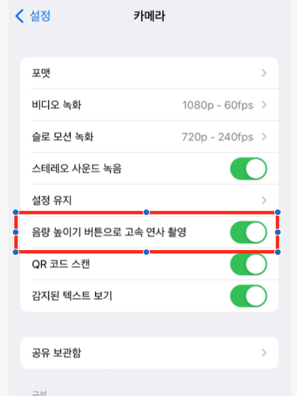 6. 아이폰 카메라 설정 : 고속 연사 촬영 단축키