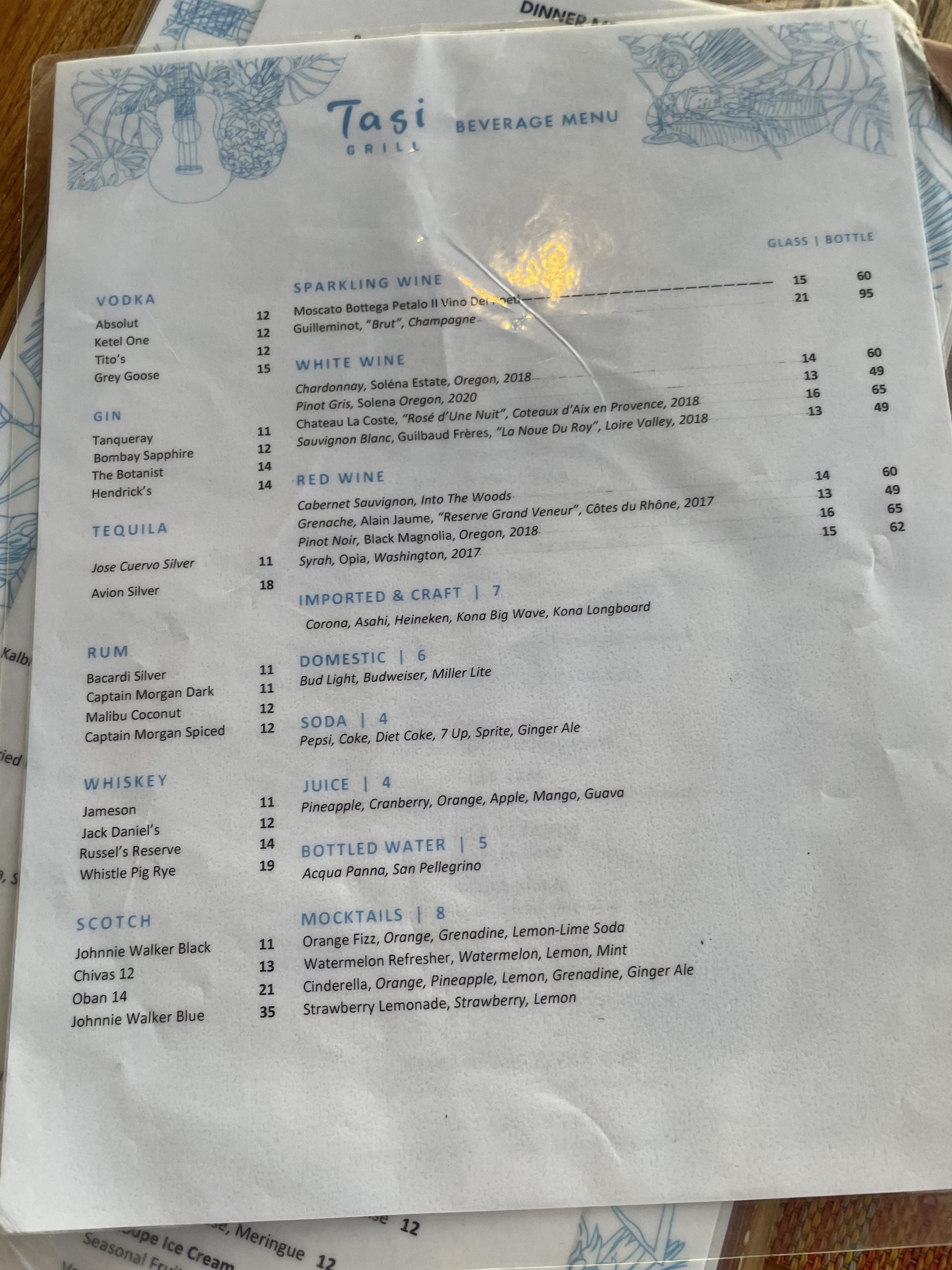 괌은 한국 여행객이 많아서 한국말 메뉴가 대부분있었는데 , 여기 타시그릴은 죄다 영어로 되어있어서