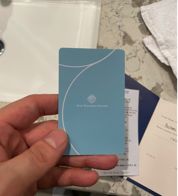 체크인을 하면 객실 카드키 2개 , 파란색 수영장 입장 카드 2개를 나눠줍니다.