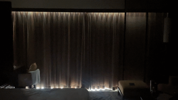 방문을 열면 이렇게 자동 커튼이 웰컴 세레모니를 해줍니다.