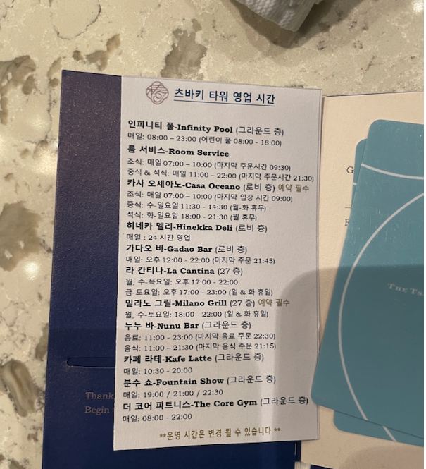 체크인시에 한국 직원분이 상주해 계셔서 완전 편하게 체크인하고 물어볼거 다 물어봤습니다. ^^