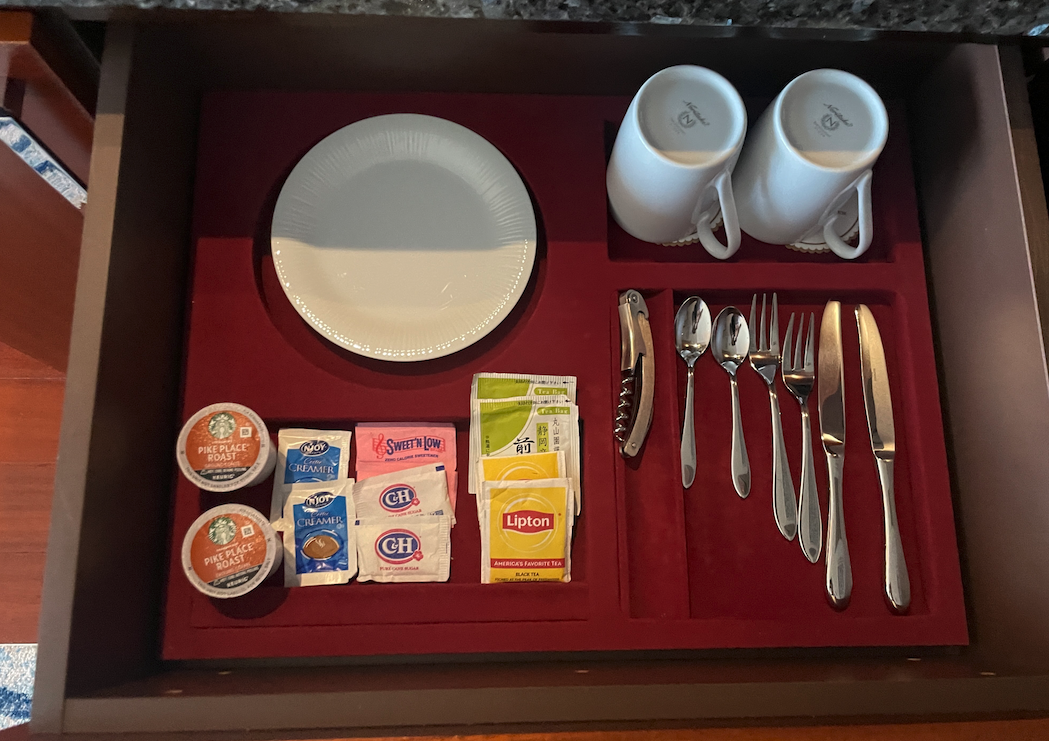 츠바키 호텔에는 커피머신이 기본적으로 되어있어 , 하루에 스타벅스 캡슐 커피 2개씩 무료로 제공해주기 때문에