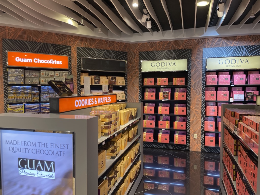 괌 면세점은 인천공항 면세점 크기보다 훨씬 작아요.