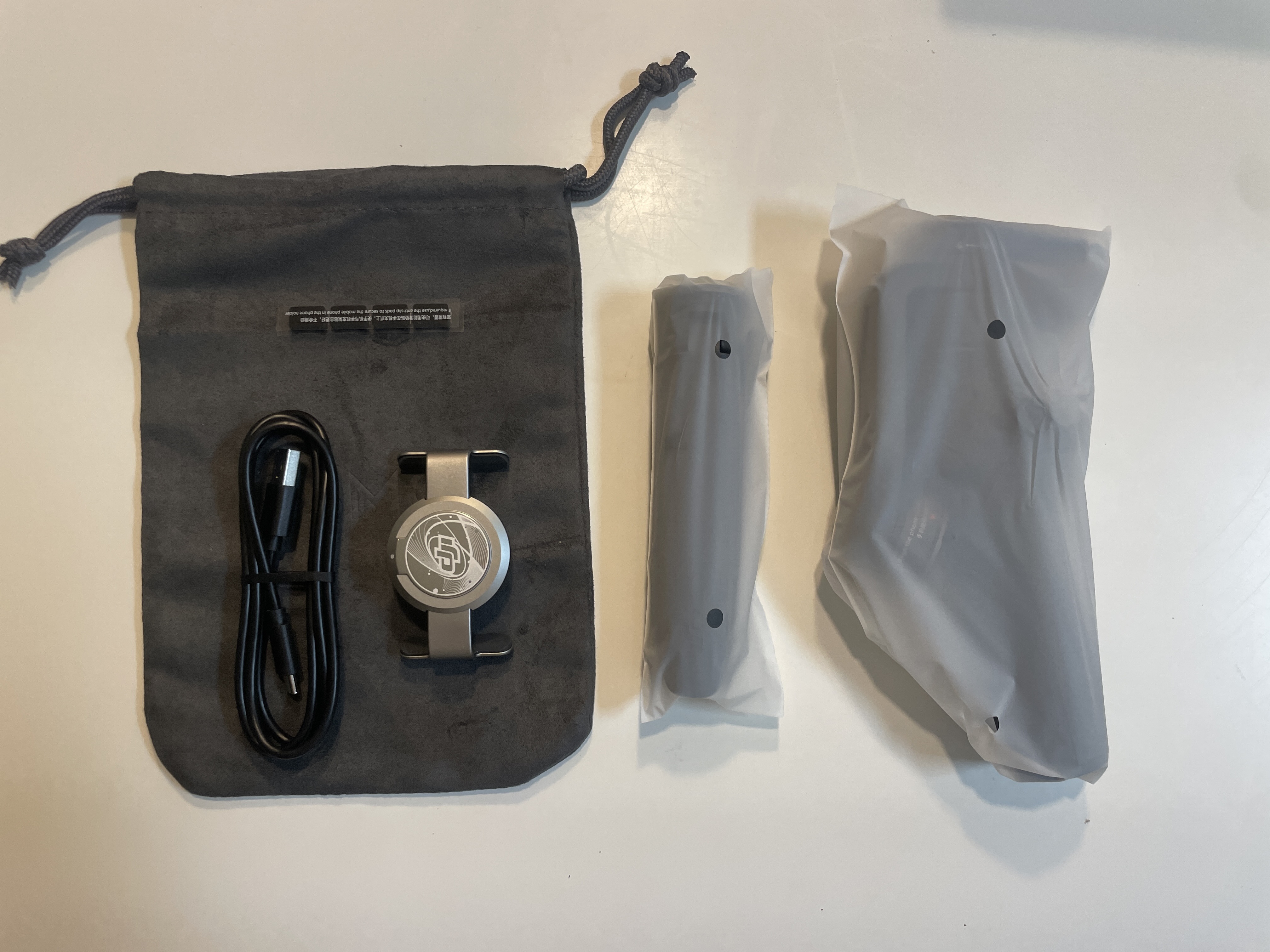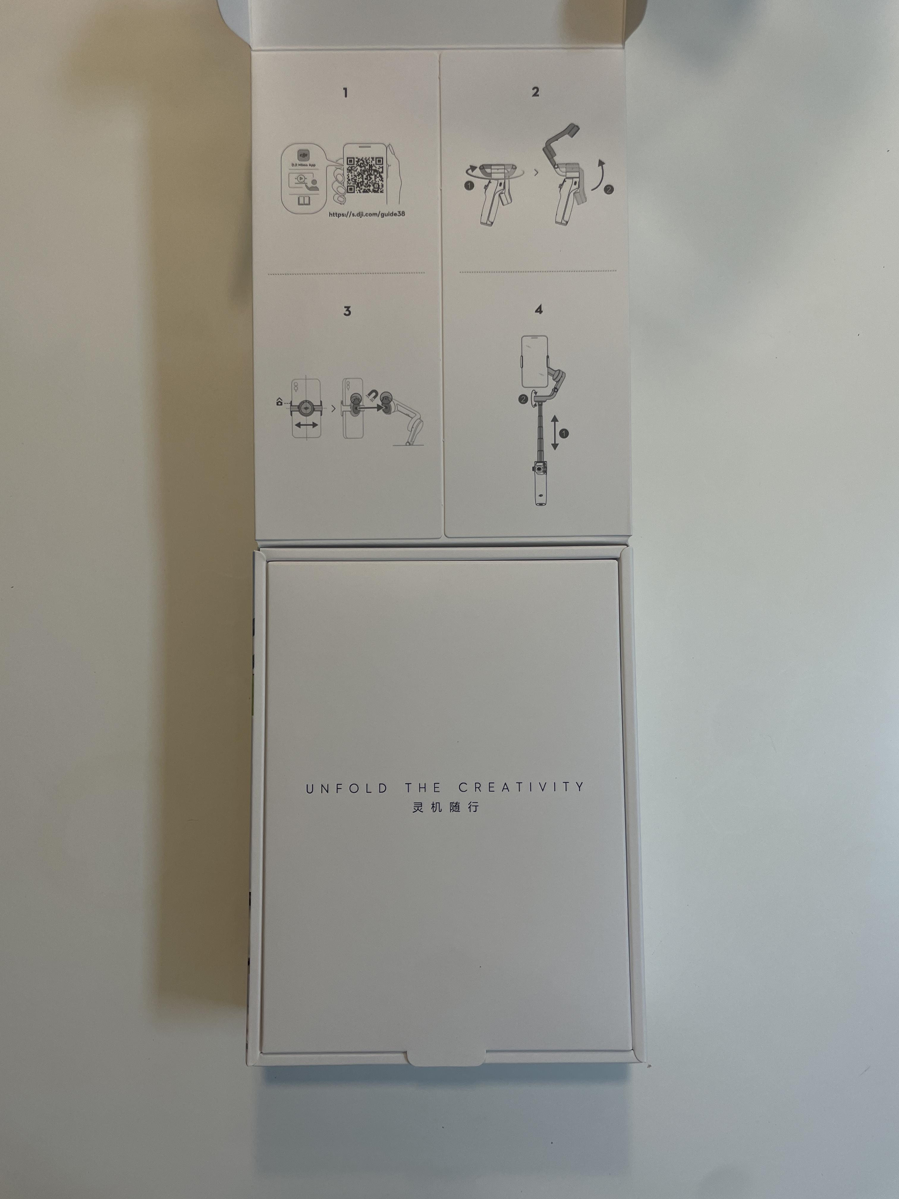 제품 박스를 뜯어보면 오즈모모바일6 짐벌 1개 , 스마트폰 거치대 1개 , 짐벌 고정 삼각대가 1개, 전용 파우치 1개가 들어가있습니다.