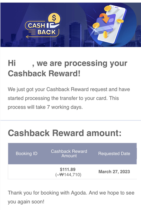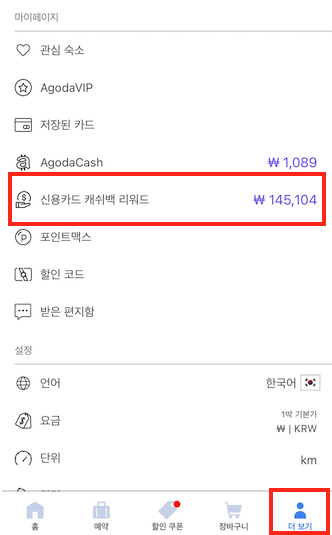 아고다 신용카드 캐쉬백 리워드 신청 방법