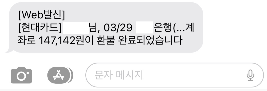 캐쉬백 리워드 신청한지 4일만에 요렇게 카드사에서 환불 메시지가 나오면서