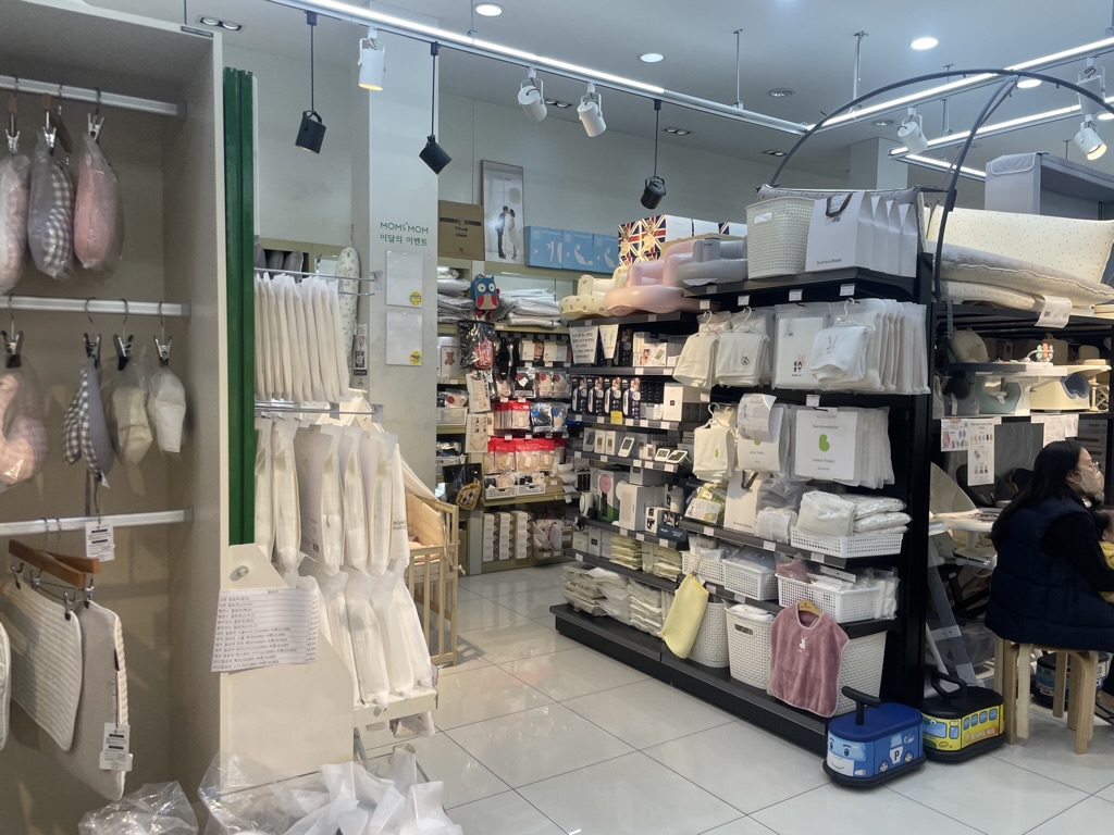 1층은 육아용품 및 아기용품, 유아 용품 들이 주로 있고 ,
