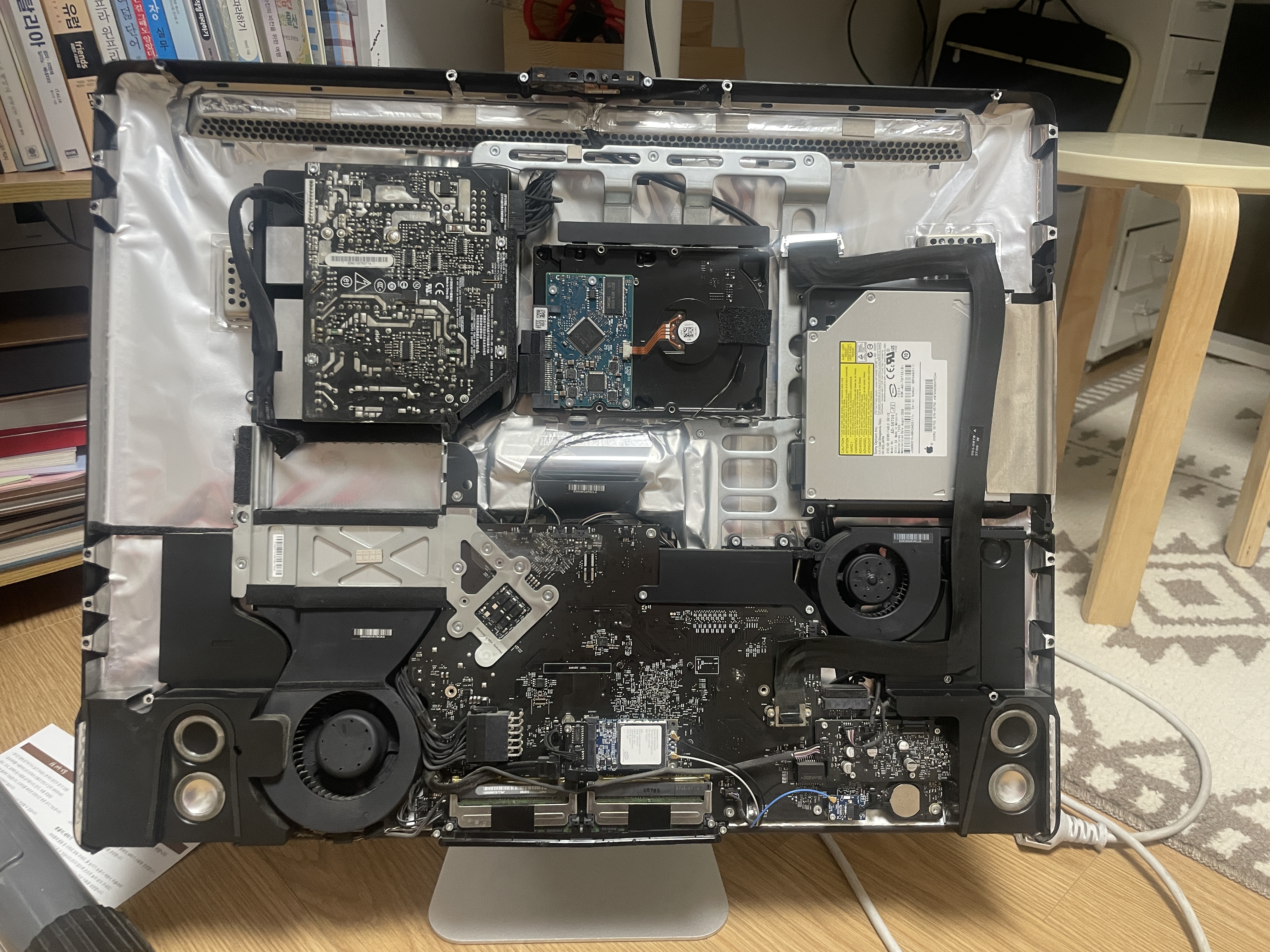 다이소 먼지제거 스프레이를 사서 중고로 5만원에 구입한 아이맥 2009년 A1225 제품을 뜯어서