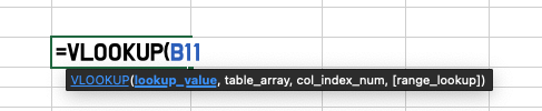 =VLOOKUP(검색할 값 (컬럼) , 찾을 값이 들어가있는 참조 표(범위) , 열의 위치 ( 찾고자하는 값의 열 ) ,일치 옵션 선택 ( 정확히,비슷하게 ) )