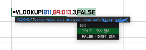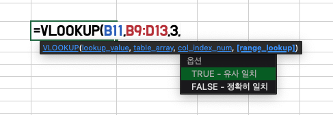 예제로 들어가있는 참조 테이블은 B9에서 D13까지 이니
