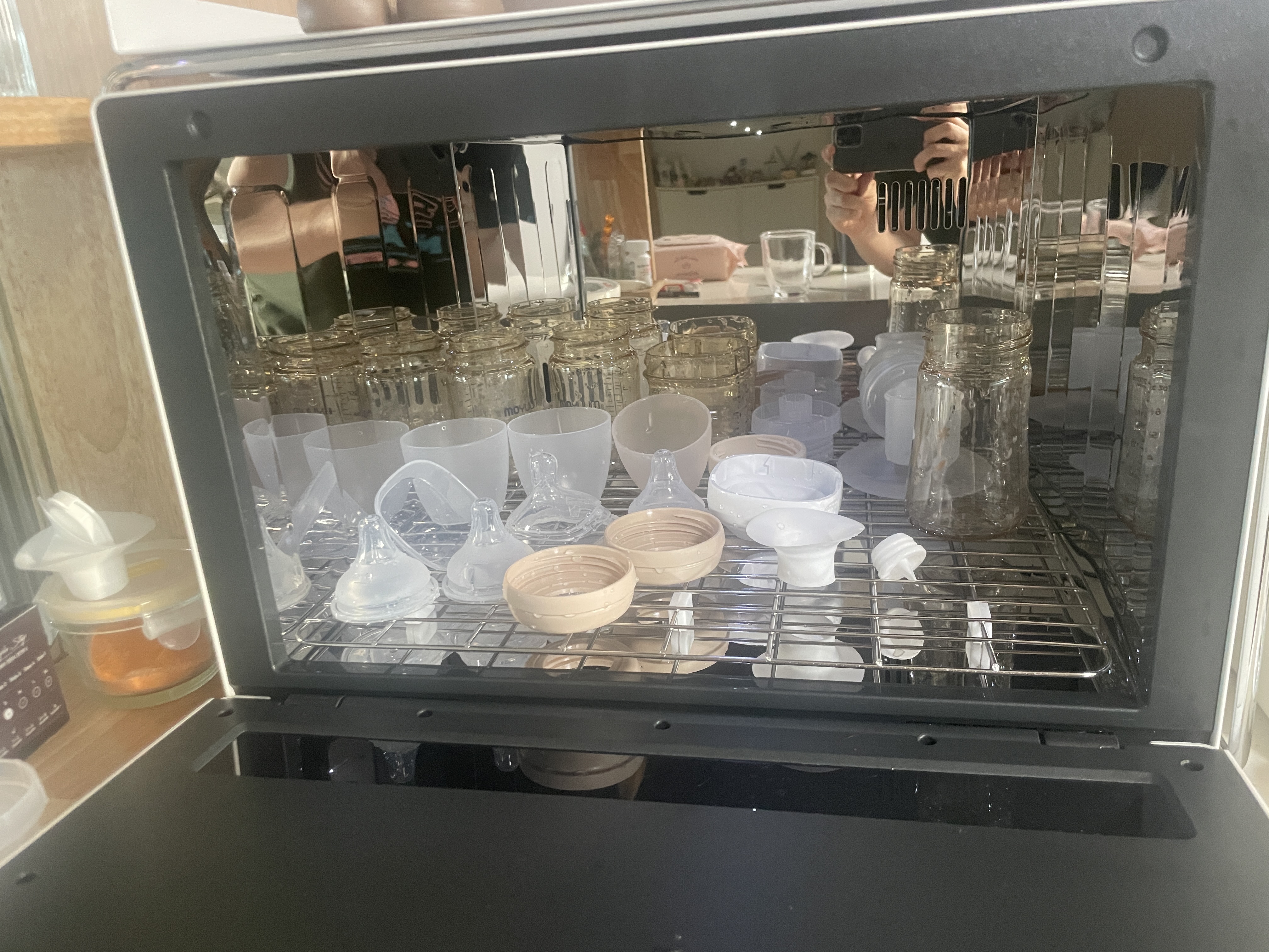 젖병 소독공간이 넓어서 많은 젖병이 들어간다.
