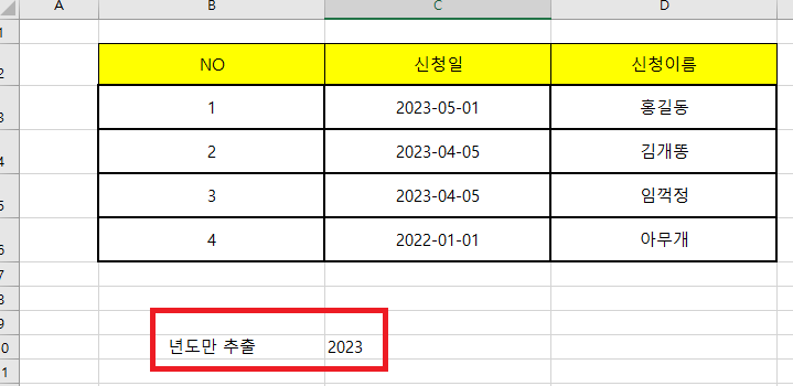 2) 추출할 년도 4자리를 추가적으로 입력해줍니다.