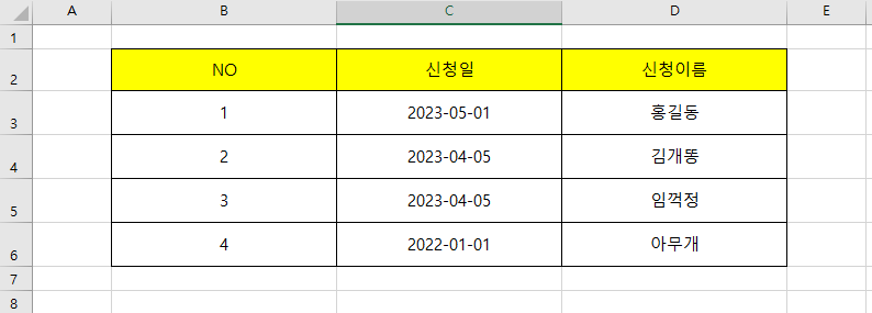 1) 아래 표와 같이 추출하고자하는 날자 표 범위를 지정해줍니다.