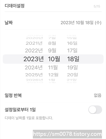 5. D-DAY 제목을 입력한 후 디데이 할 날자를 선택합니다.
