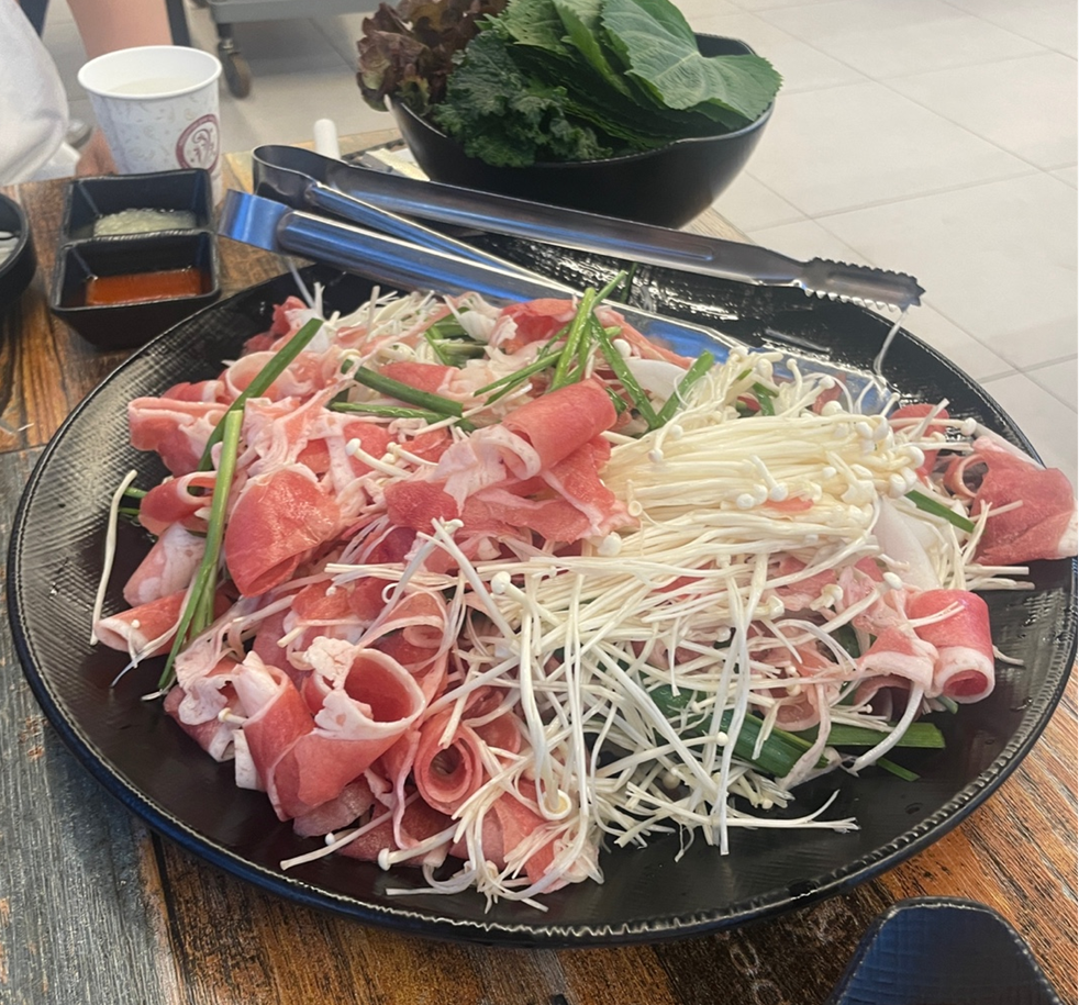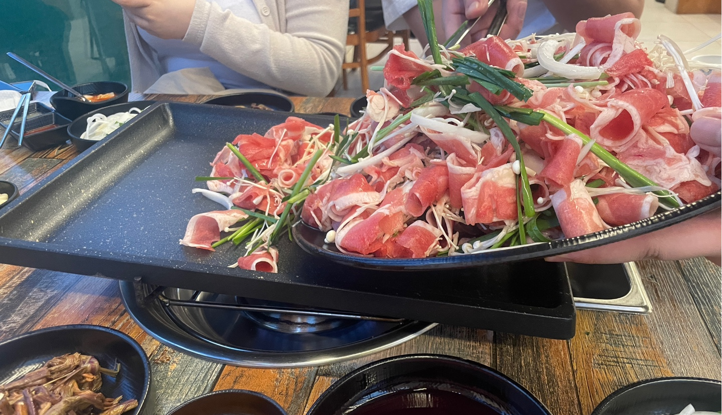 오리고기 두께가 얇기 때문에 바로 바로 익어서 빨리 먹을수 있는 점도 아주 좋네요