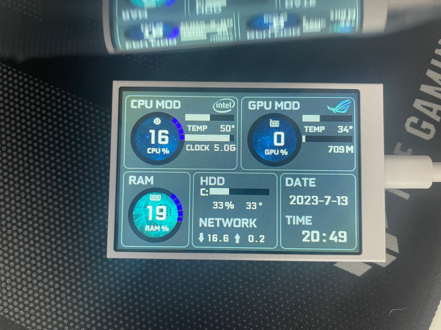 인테리어 효과도 나오고 , CPU 온도 ,GPU , SSD 등의 사용량 리소스등을 확인 할 수 있어서 바로 구매했습니다.