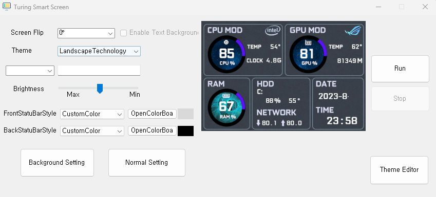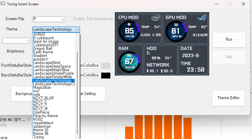 다른건 크게 보실필요없고 , 테마쪽에서 마음에 드는 테마찾아서 실행하면 3.5인치 LCD 디스플레이에 적용됩니다.