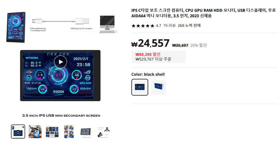 알리익스프레스에서 판매중인 3.5인치 IPS 보조 디스플레이 가격은 2만원대 초중반으로 판매되고 있습니다.