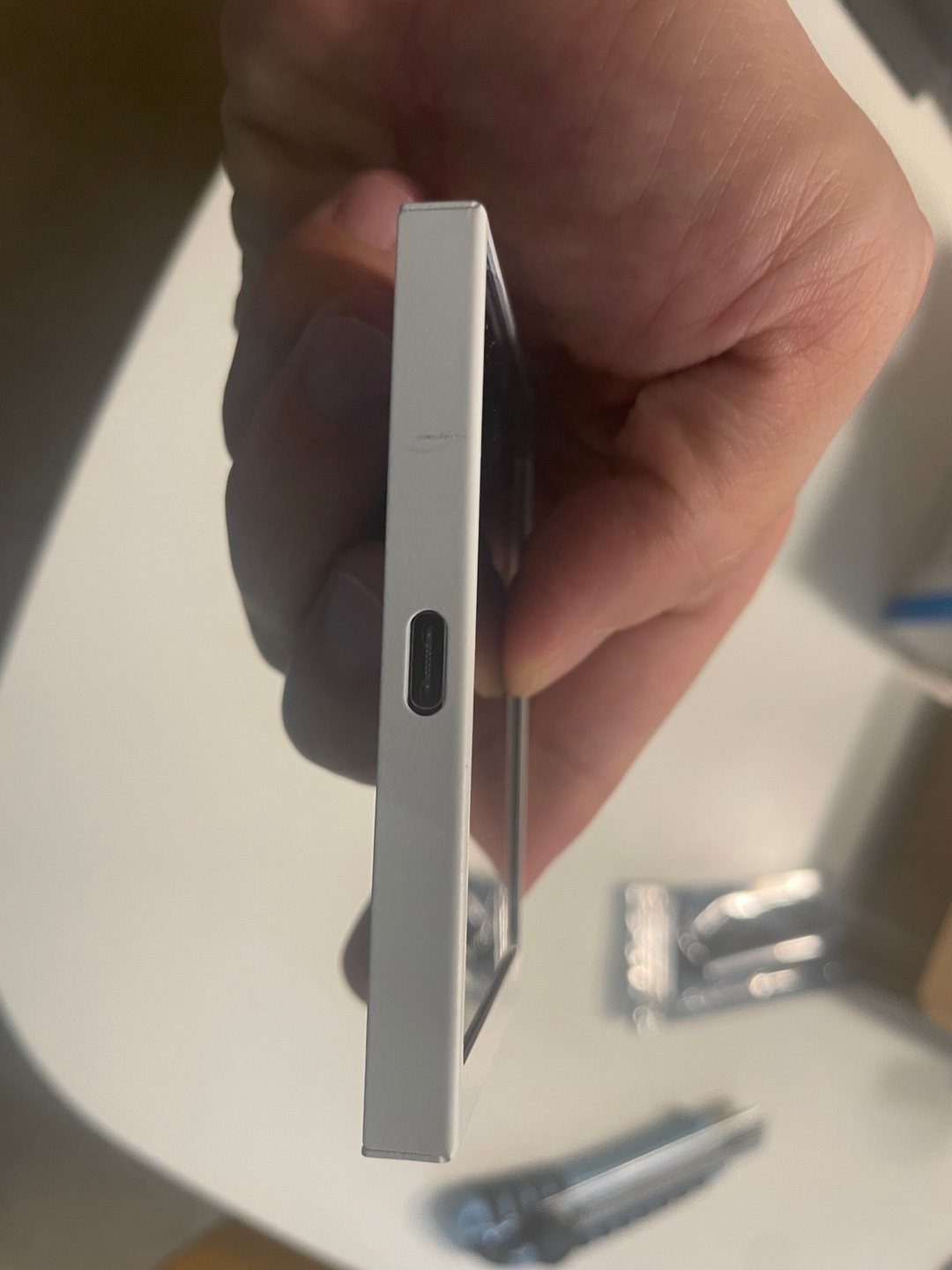 3.5인치 디스플레이 아랫면 , 옆면에 C타입 전원 공급 케이블 연결단자가 있습니다.