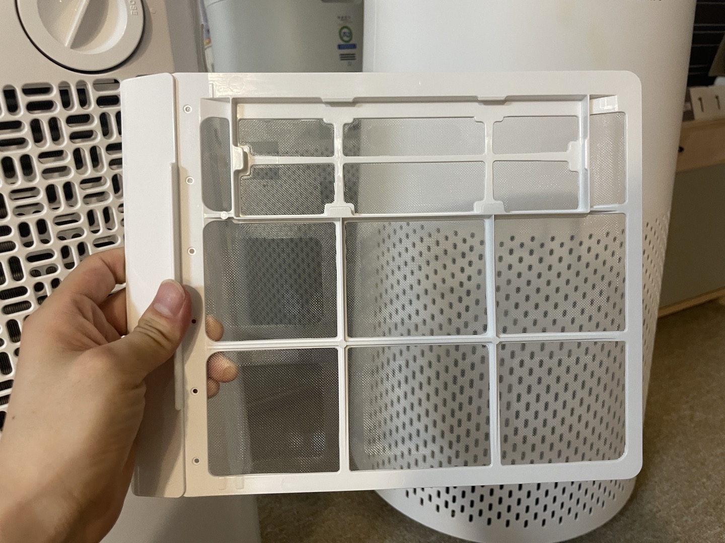 가운데 구멍은 공기청정기마냥 되어있는데 , 먼지 필터가 들어가있습니다.
