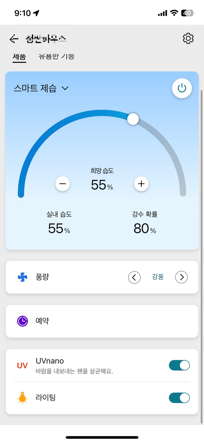 운전모드는 다양한 모드가 있는데 , 집에 많이 습하면 쾌속제습 모드를 사용하고 , 일반적으로 스마트제습기능을